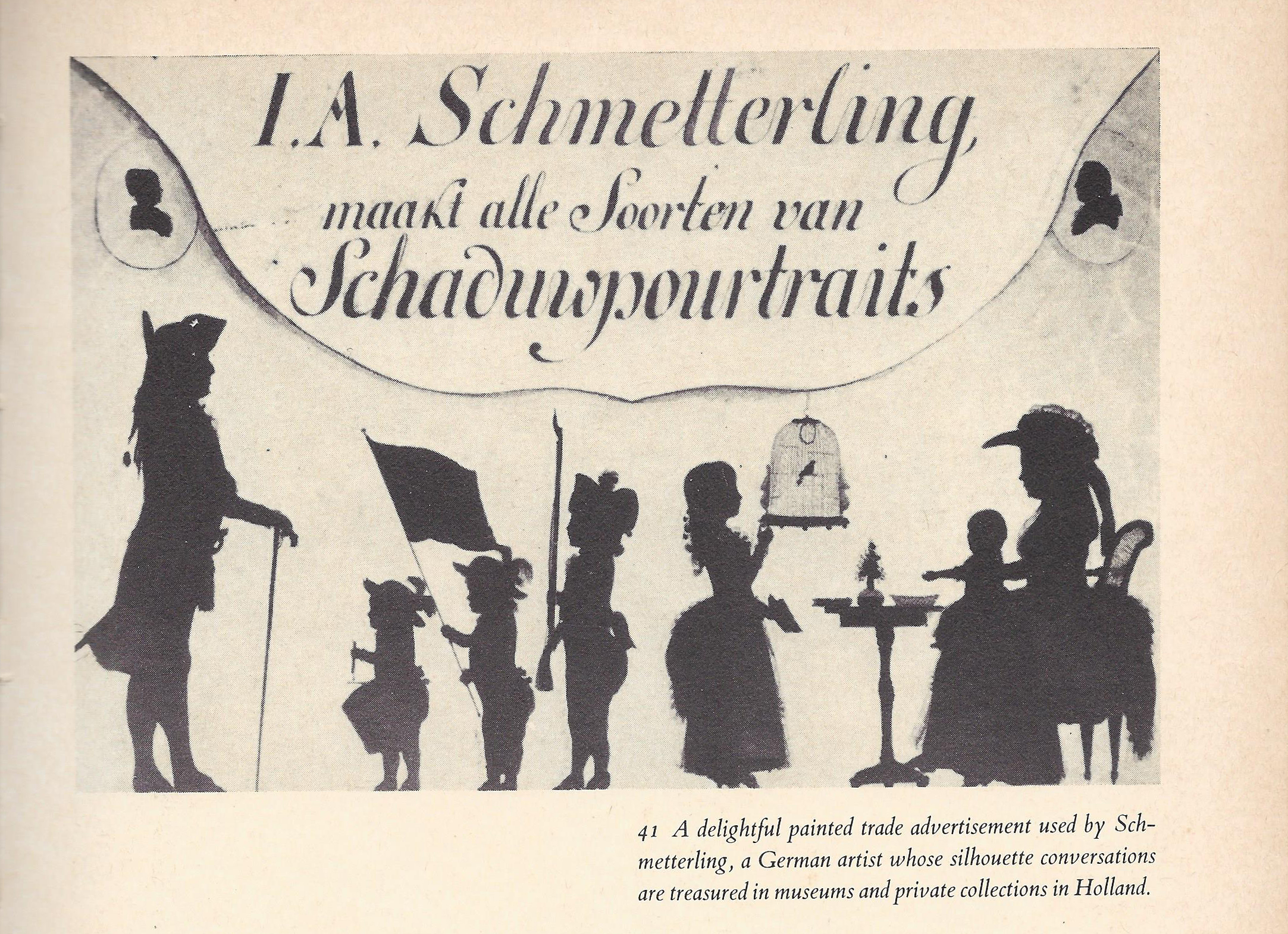 Hickman, Peggy, Silhouettes, A Living Art, St. Martins Press, New York, 1975, 41. Hickman mistakenly refers to Schmetterling as German although she acknowledges that he was born in Austria. She illustrates her book with a wonderful handbill used by Schmetterling. See the photos for a scan of that handbill.